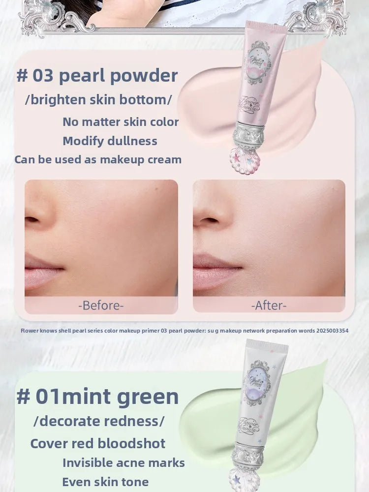 Makeup Flower Knows Shell Pearl Collection Primer Coloring Makeup Base Face Milk Brightening and Holding Make Up Concealer